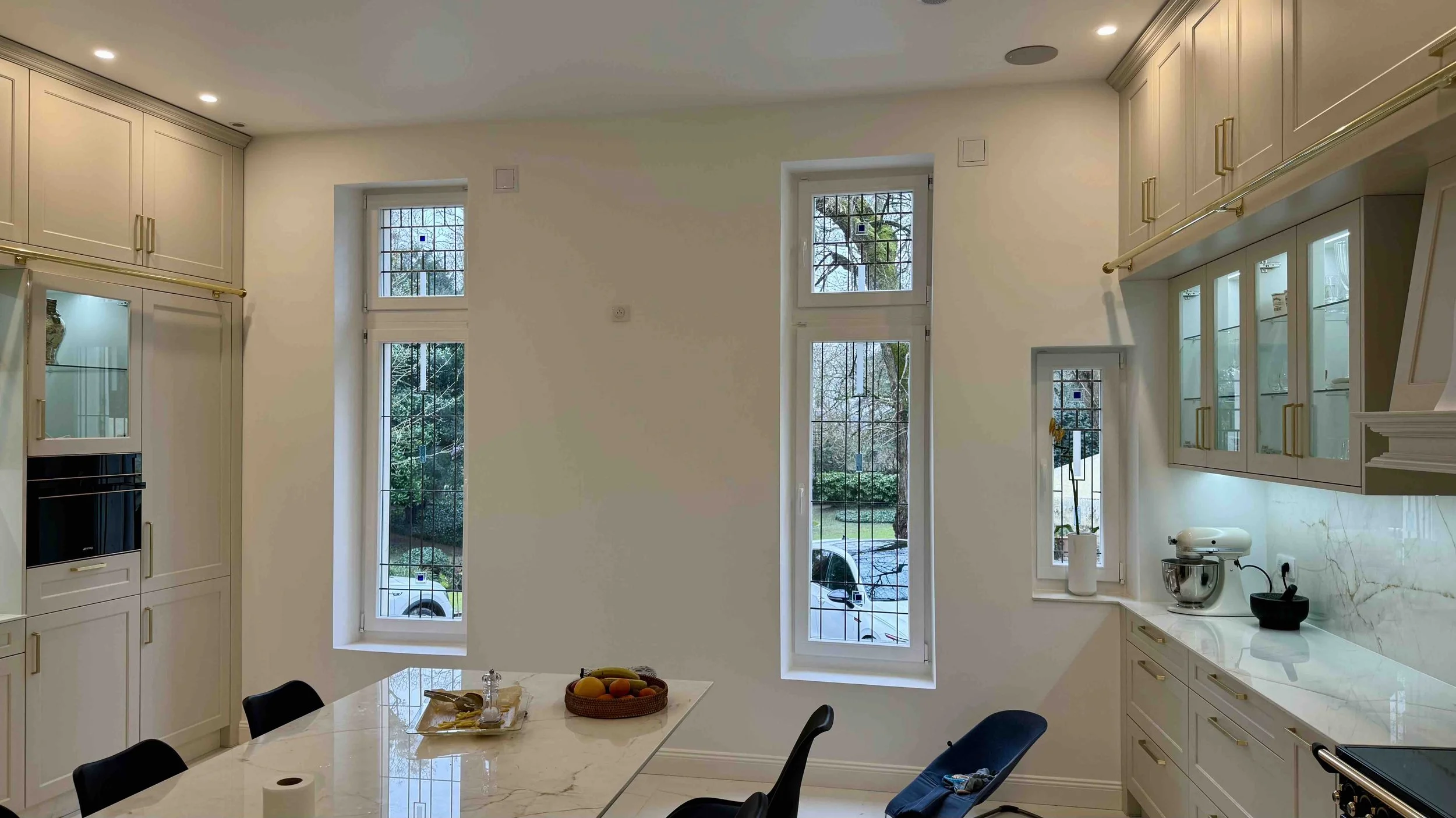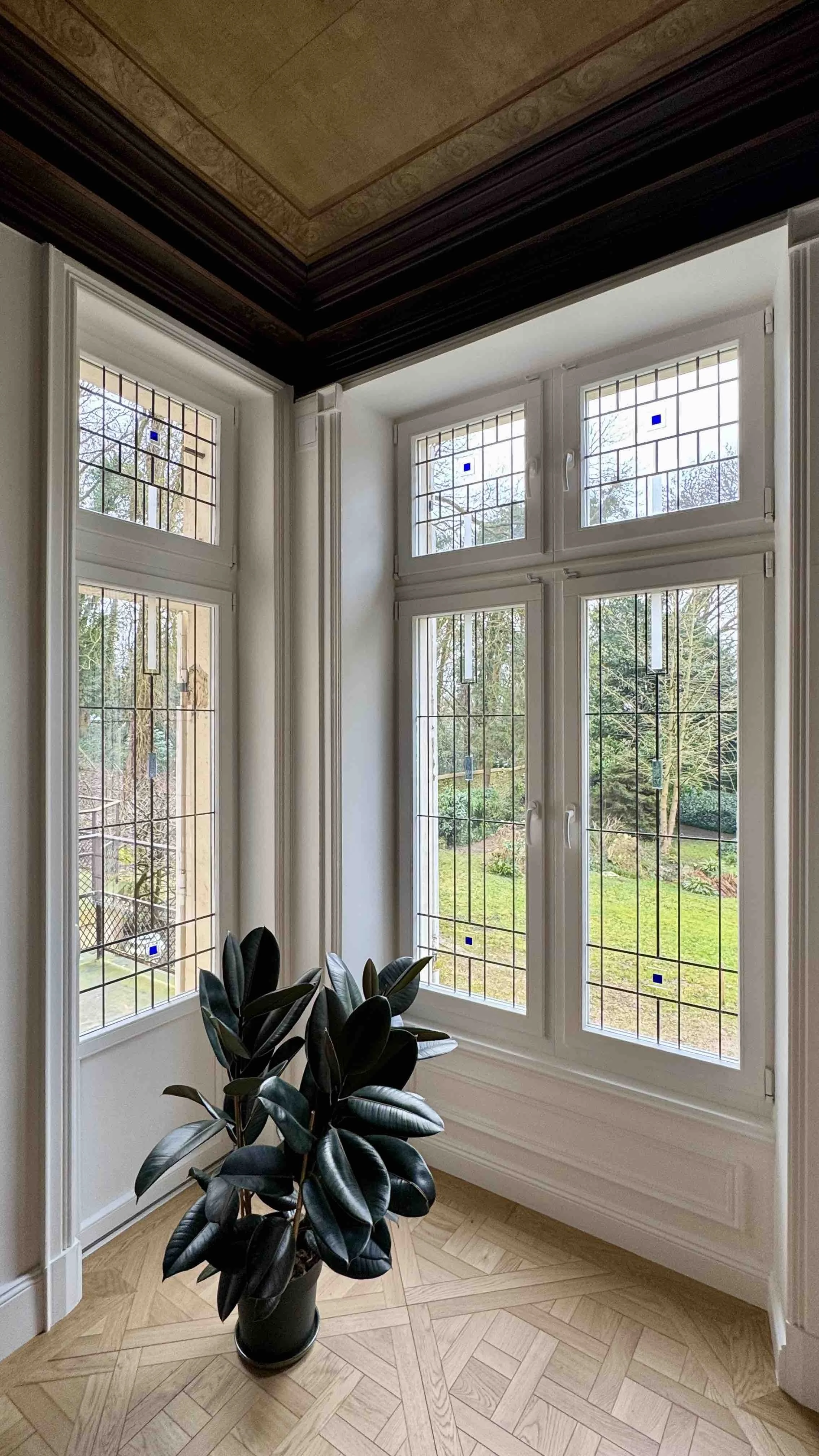 Chaque décor verrier a été soigneusement pensée et réalisé pour créer une harmonie parfaite entre les différents espaces de vie et l’architecture du manoir. Ce projet illustre pleinement notre engagement sublimer l’architecture tout en respectant son âme et son histoire.